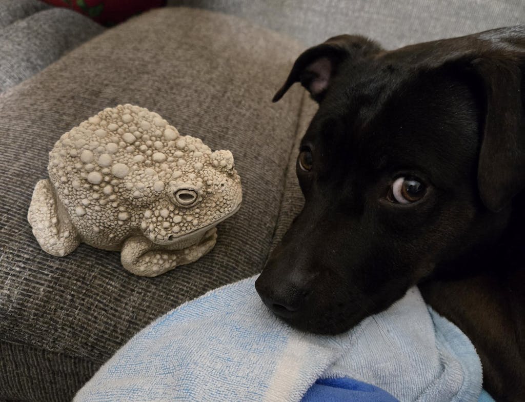 This is the large version of our toad. With all her lumps and bumps, she is still pretty cute. The perfect statue to place near a pond or on a deck. She almost looks as though she is waiting for someone.