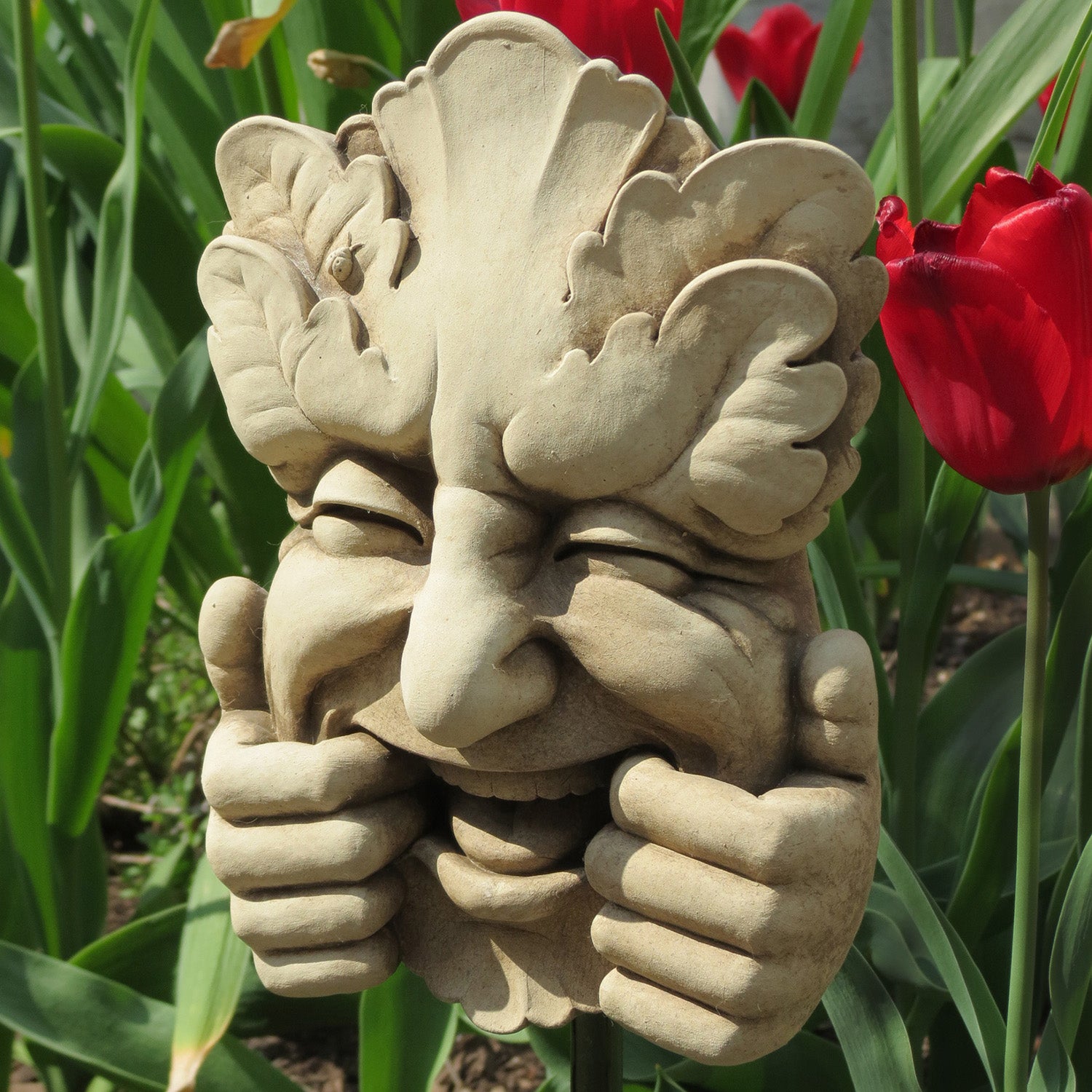 This garden face sculpture will bring a smile to anyone who passes by. Hang to welcome guests or just add humor to the garden or favorite roo. . . Show More >